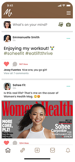 Momentum by Sohee is a monthly workout program available to people all around the world. The workouts are updated monthly and come complete with warmup & exercise demos, workout tracking, news feed, and private form checks.